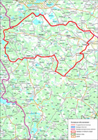 Южная: от н.п. Послово по дороге через н.п. Курово, Гришаново и далее в сторону н.п. Новгородцево Пустошкинского р-на до пересечения с адм. границей Пустошкинского и Новосокольнического р-нов, далее в западном направлении по этой адм. границе до стыка с оз. Хвойно.